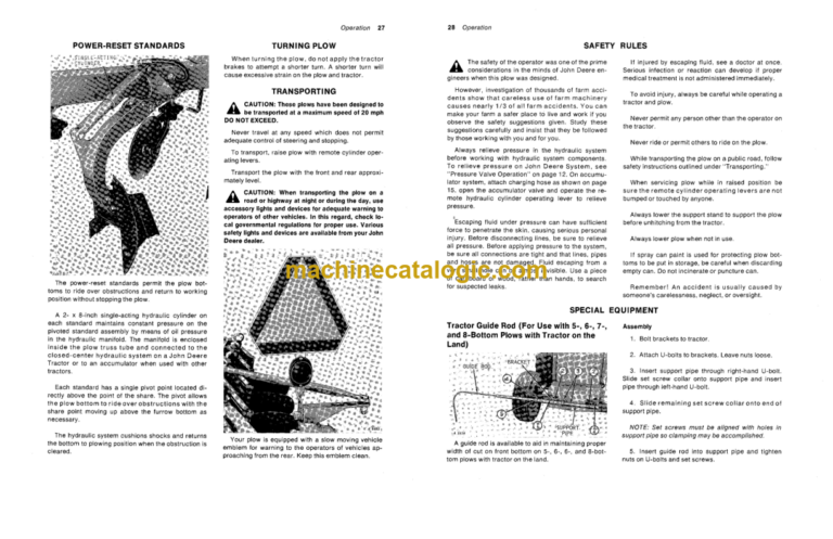 John Deere F370 and F380 Series Power-Reset Drawn Moldboard Plows Operator’s Manual (OMA22707)