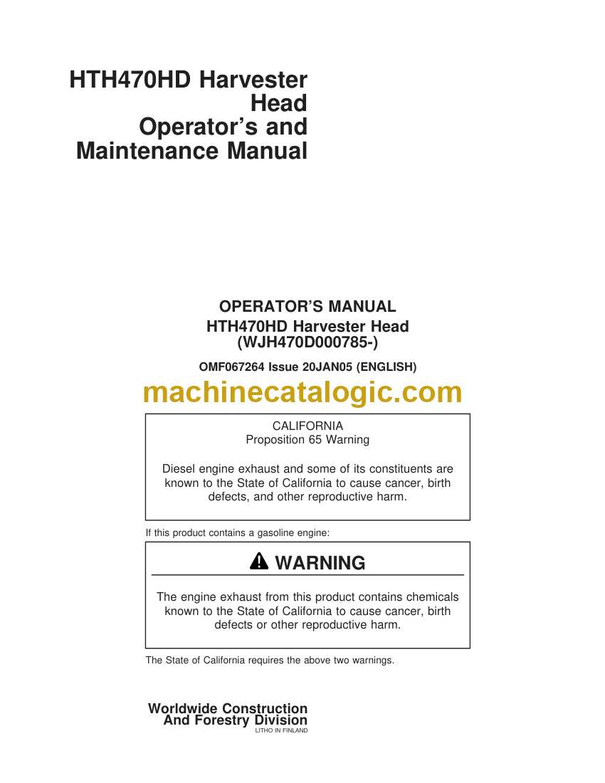 John Deere HTH470HD Harvester Head Operator Manual (OMF067264)