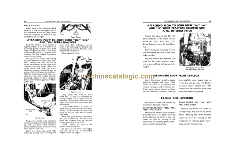 Attachmg Plow to John Deere “50,” “60,” and “70” Semes Tractors