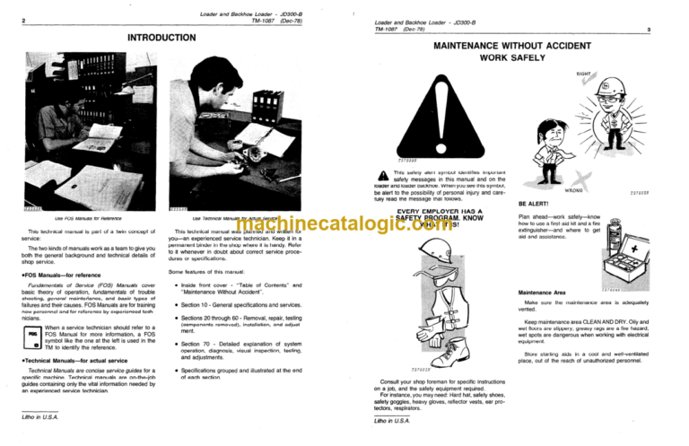 John Deere JD300-B Loader and Backhoe Loader TABLE OF CONTENTS: