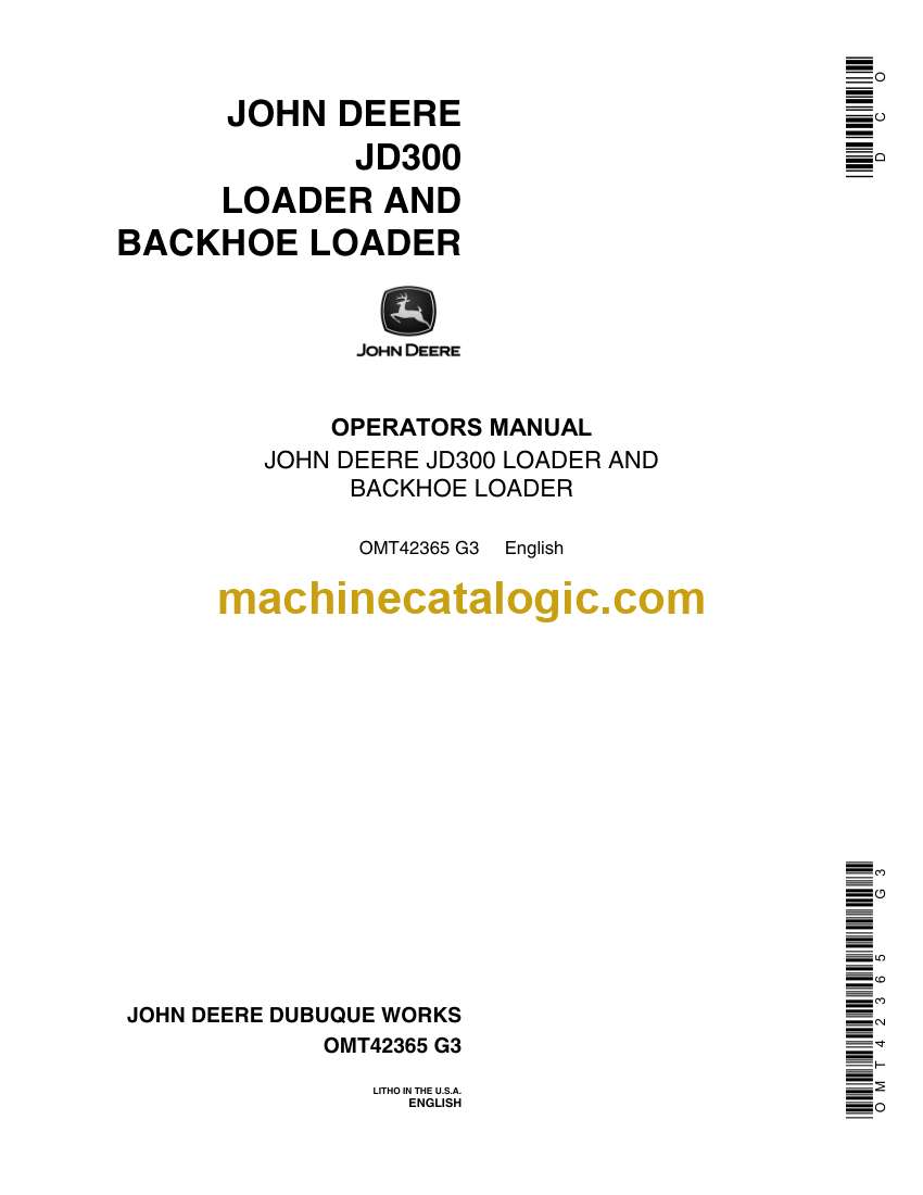 John Deere JD300 Loader and Backhoe Loader Operators Manual (OMT42365)