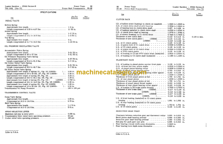 John Deere JD500 Series-B Loader Backhoe INDEX: