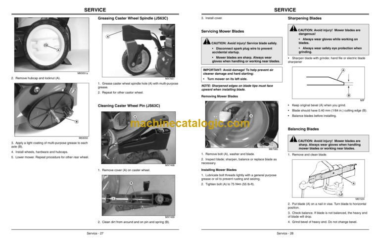 John Deere JS60H, JS61, JS63 and JS63C Walk-Behind Rotary Mowers INDEX: