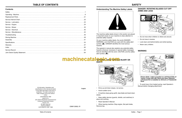 John Deere Quality Statement . . . . . . . . . . . . . . . . . . . . . . . . . . . . . . . . . . . . . . . . . . . . . . . . . . . . . . . . . . . . . . . . . . . . . . .64
