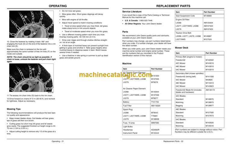 John Deere LX266, LX277AWS, LX279 and LX288 Lawn Tractors Operator’s Manual (OMM148972i2)