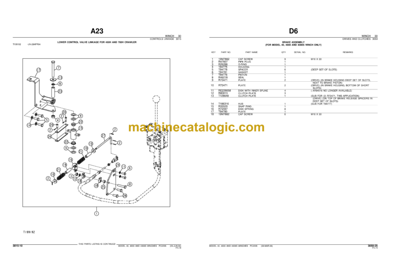 A23 BRACKET, CONTROL VALVE LOWER LINKAGE B23 COVER 4000S (700H) WINCH VALVE …………………….. 3042 – 6