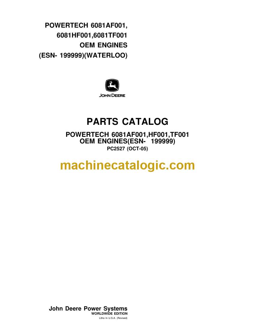 John Deere Powertech 6081AF001, 6081HF001, 6081TF001 Oem Engines Parts Catalog (PC2527)
