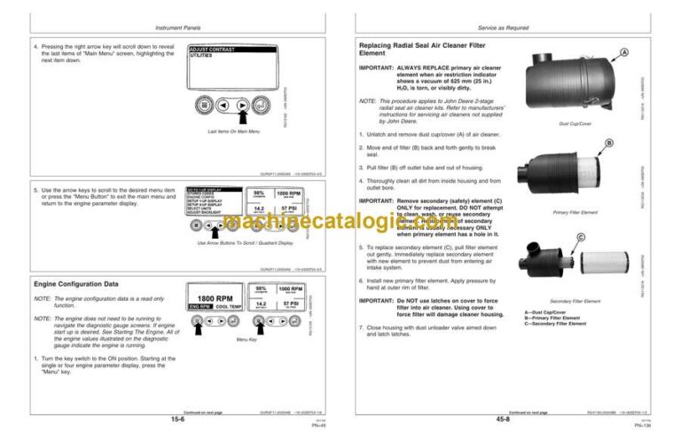 Main Menu Navigation . . . . . . . . . . . . . . . . . . . . 15-5 Replacing Fuel Filter Elements. . . . . . . . . . . . . . 35-9