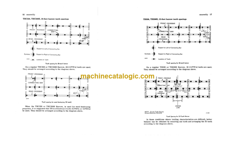 John Deere TH224, TH224H, THC328, THC328H, TH336, TH336H, TH436 and TH436H Spring-Tooth Harrows INDEX:
