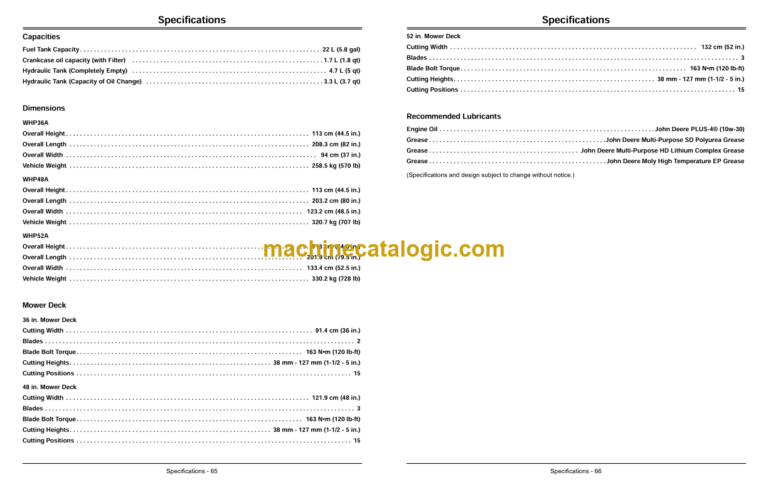 John Deere WHP36A, WHP48A, WHP52A Commercial Walk Behind Mower Operator’s Manual (OMTCU33547 K2)