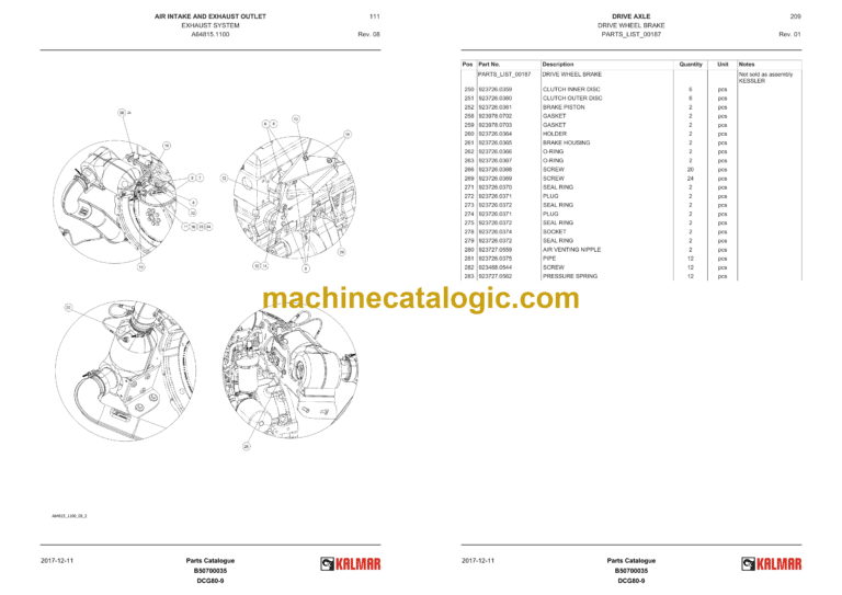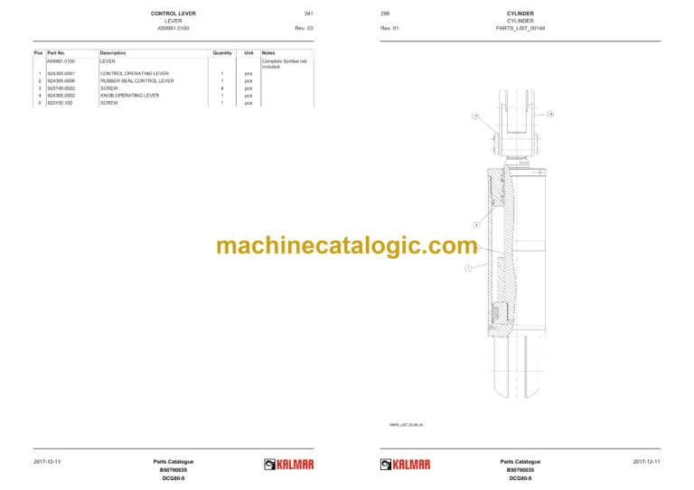 Kalmar DCG 80-9 Forklift Truck Spare Parts Catalogue (B50700035, B50700038, B50700033, B50700036)