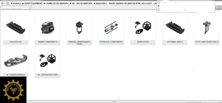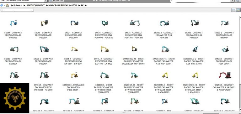 Electronic spare parts identification catalog for Kobelco Heavy Equipment (Crawler Excavator, Loader Backhoes, Wheel Loaders), Kobelco Light Equipment (Mini Crawler Excavators) and Engines.