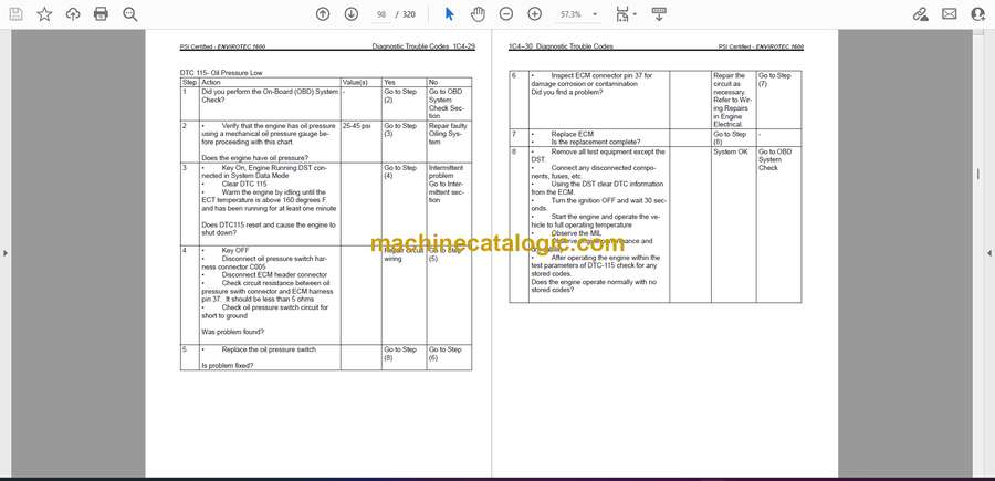 These Kohler 10–30 kW PSI Envirotec 1600 engines usually sit in standby or prime power generators, working in dusty yards, mechanical rooms, or outdoor enclosures. This service manual is what I’d pull when I need to prove what’s wrong before swapping parts—especially on emission-certified setups where guessing is expensive. For example, if an engine starts hunting under load and the exhaust smells off, I’d use this book to trace through fuel, ignition, and emission controls step by step until I isolate the real fault.