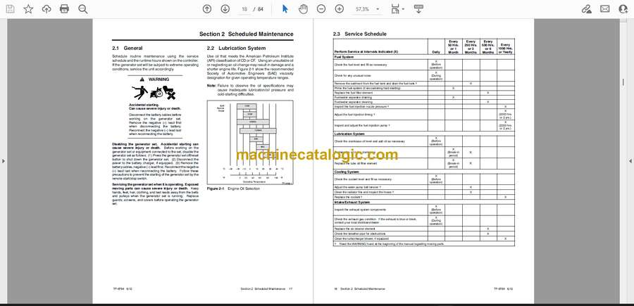 A: I’d print the procedures and diagrams you use most often, put them in sheet protectors, and keep them in the genset’s enclosure or shop binder.