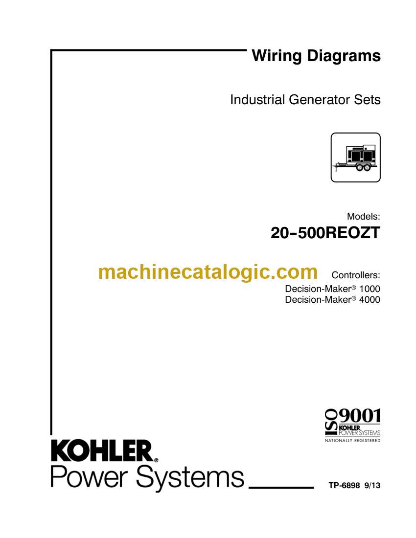 These Kohler 20–500REOZT industrial generator sets usually sit in plant rooms, hospitals, or outdoor enclosures, kicking in when the main power drops. This wiring-diagram manual is what I’d grab to trace circuits, confirm connector logic, and make sure a harness repair or retrofit is actually correct before I re-energize the set. For example, if the generator won’t start after a control panel swap, this is what I’d use to follow the start circuit from the controller, through each plug, all the way to the engine interface.