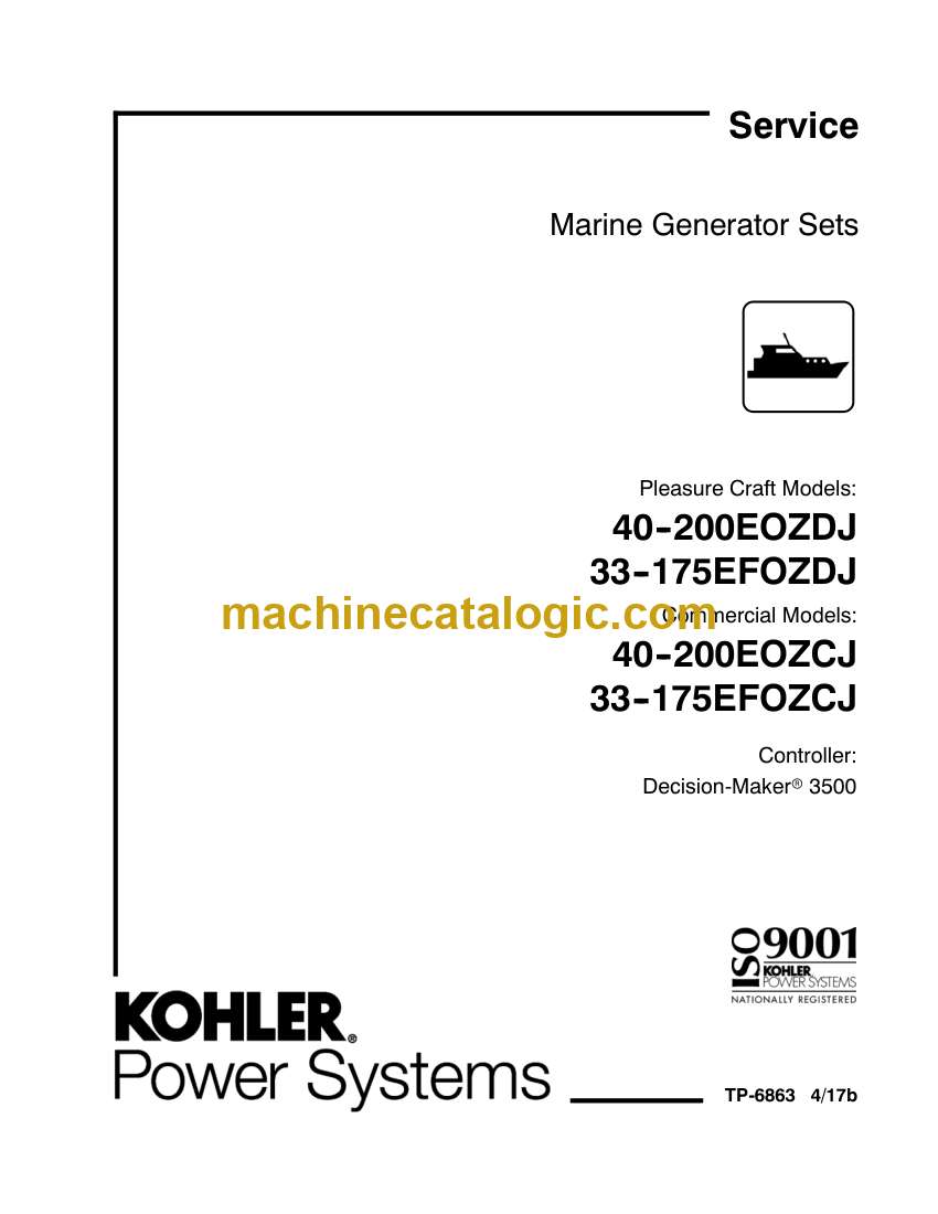 Kohler 40-200EOZDJ, 33-175EFOZDJ, 40-200EOZCJ, 33-175EFOZCJ Marine Service Manual (tp6863)