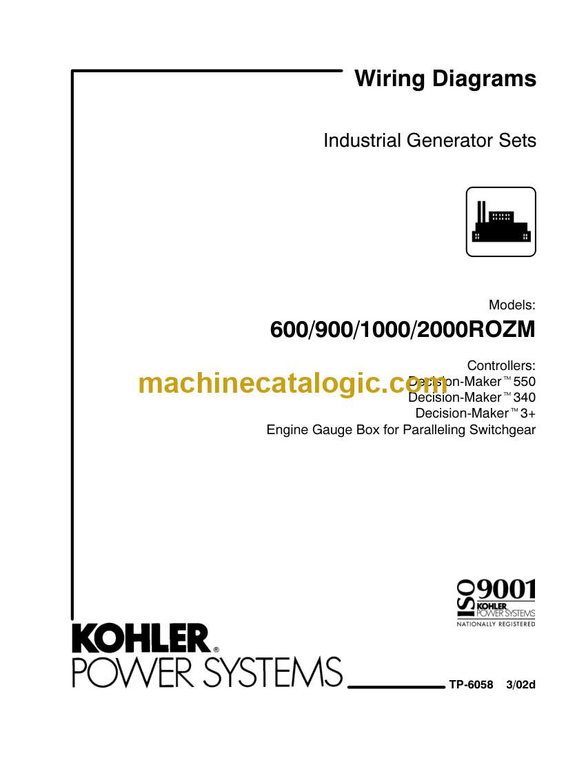 Kohler 600ROZM, 900ROZM, 1000ROZM, 2000ROZM Industrial Generator Sets Wiring Diagrams (tp6058)