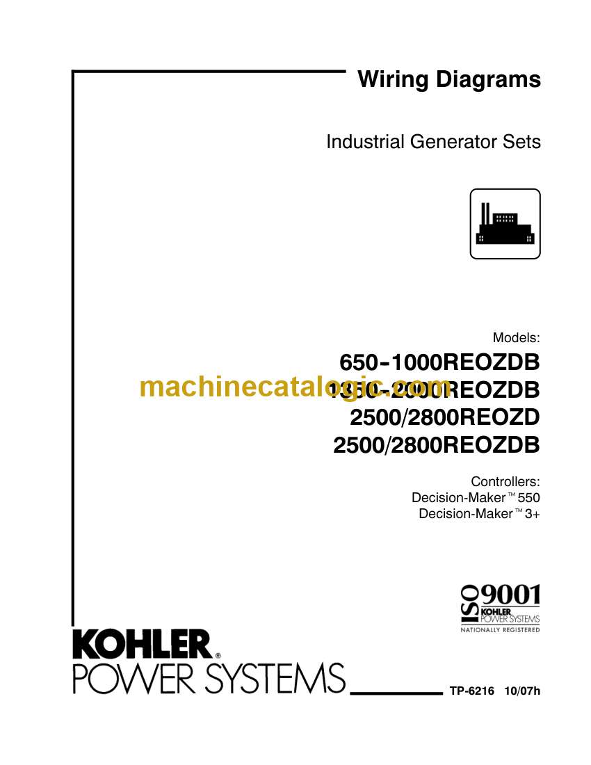 These Kohler industrial generator sets usually sit in plants, hospitals, data centers, or big commercial buildings, carrying the load when the grid drops. This wiring-diagram manual helps you trace circuits, confirm connector pinouts, and route harnesses correctly across several REOZDB and REOZD models. When you’re chasing a no-start after a control-panel swap or a retrofit, this is what you use to follow the signal from the controller, through every plug, right to the engine and breaker cabinet.