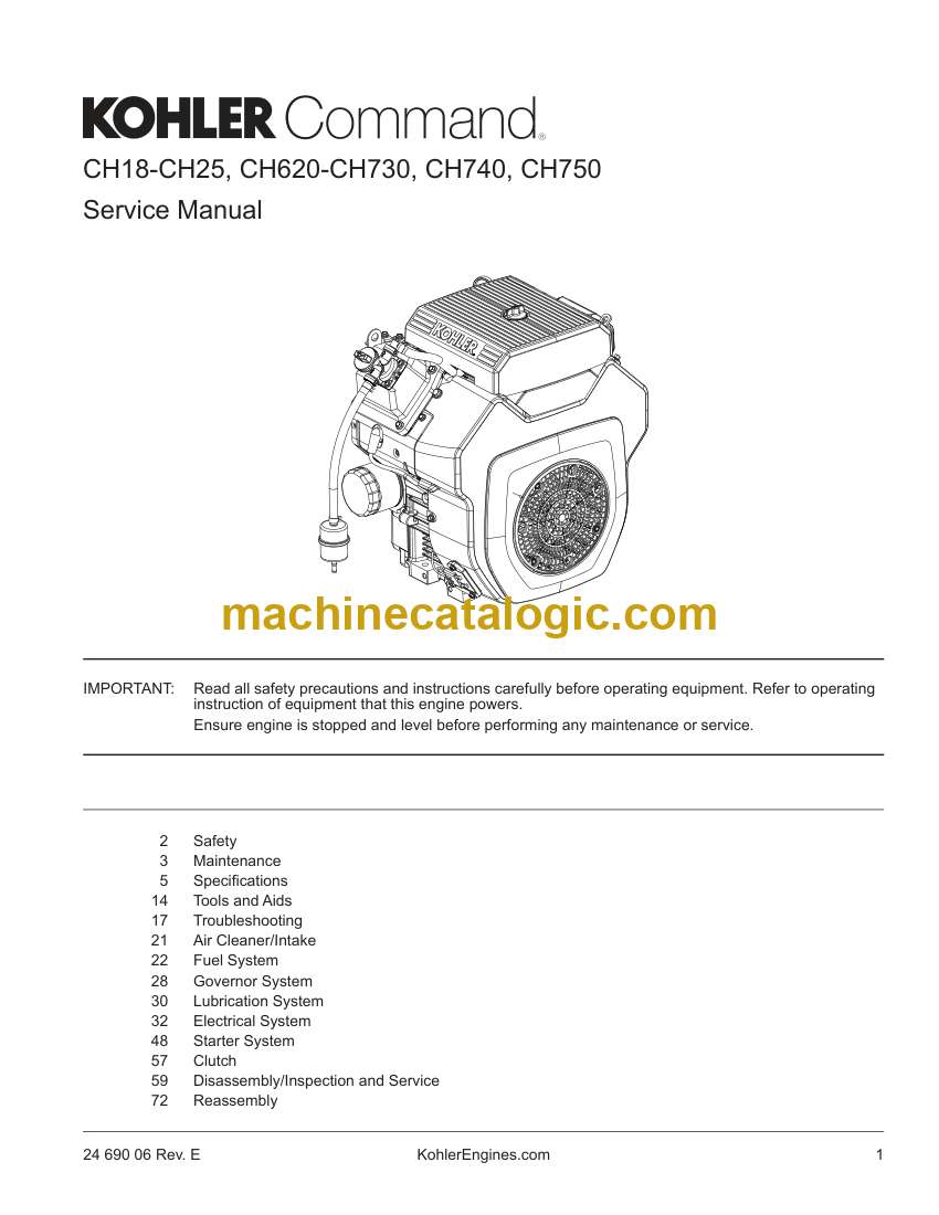 These Kohler CH18–CH25 and CH620–CH750 engines usually live on mowers, small loaders, and generators that work in dust, grass, and mud all day. This service manual is what I grab when I need to prove what’s actually wrong before I order parts. If an engine is hard to start hot, fouling plugs, or hunting at idle, I use this book to trace the problem step by step instead of guessing at coils or carburetors.