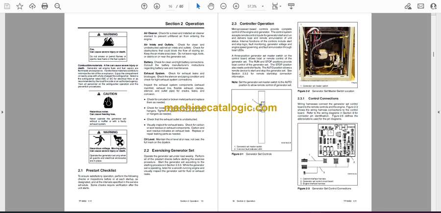 On a commercial COM5 set that lives in a plant room or outside on a pad, this manual is what I keep nearby when the generator won’t start, won’t take load, or is acting up after a service. It walks you through how to trace faults logically instead of just throwing parts at it. For example, if the unit shuts down under load, I’d use this to verify the basic engine and alternator checks, then follow the control-system steps to isolate whether it’s a sensor, wiring, or a real mechanical problem.