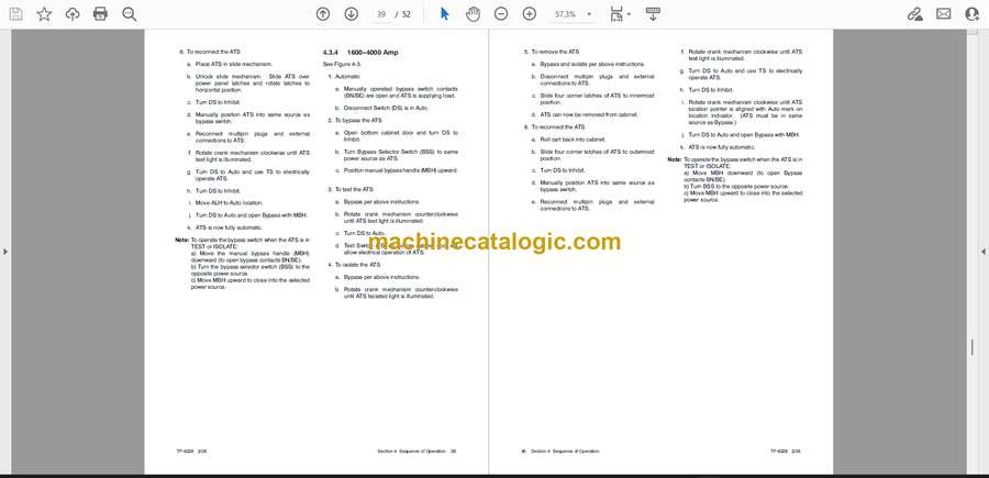 These Kohler KCL/KBL transfer and bypass-isolation switches usually live in plant rooms, hospitals, data centers, and other spots where you can’t afford the lights to flicker when power jumps between utility and generator. This manual is what I’d keep on the bench when I’m wiring one in, setting it up for closed-transition operation, or verifying it’s transferring cleanly under load. If a customer reports that the switch hesitates during transfer or won’t isolate properly for maintenance, this is the book I’d use to trace the control logic, confirm the mechanical positions, and walk through the correct operating sequence.