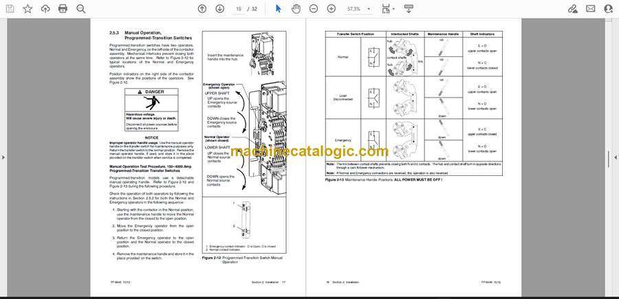 2.5.2 Manual Operation, 225–4000 Amp Standard-Transition Switches . . . . 15