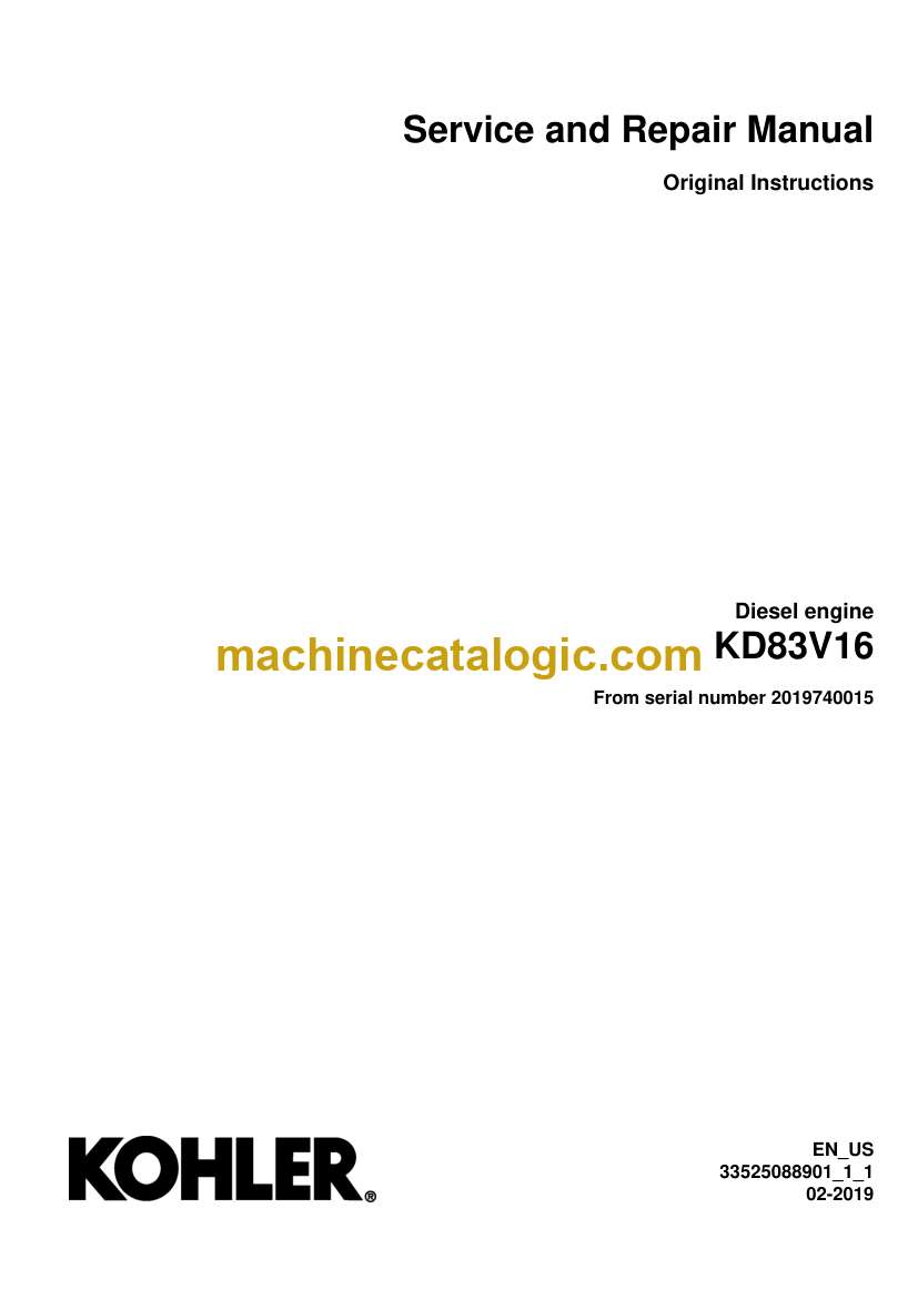 Kohler KD83V16 Diesel Engine Service and Repair Manual (33525088901)