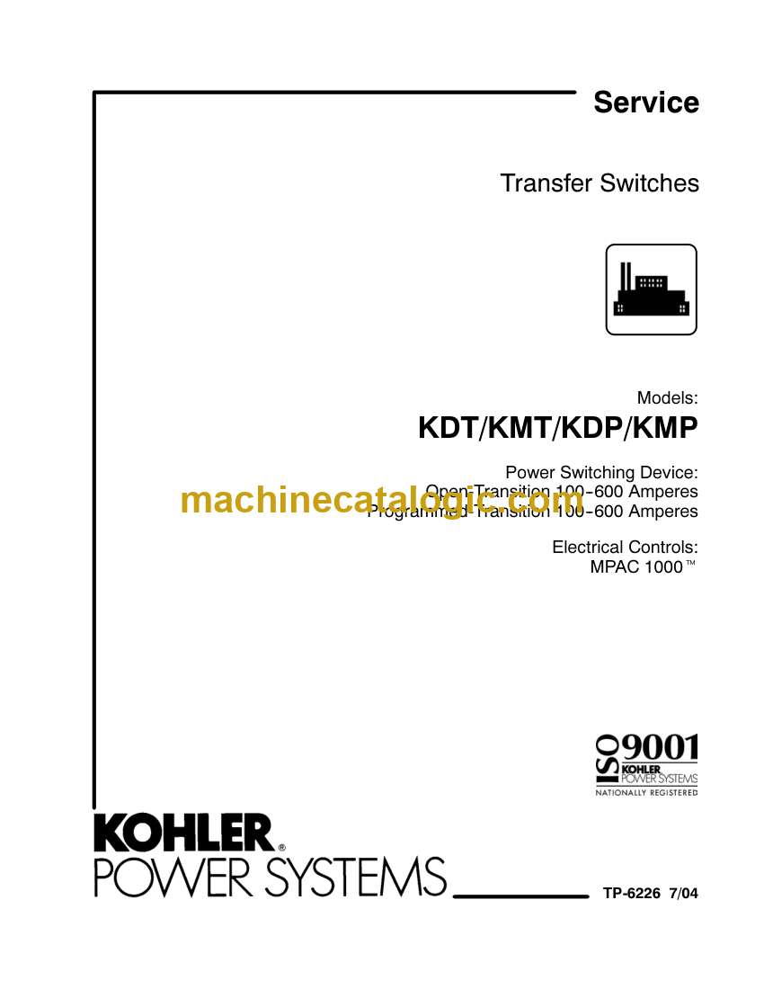 These Kohler KDT, KMT, KDP, and KMP transfer switches sit between the utility and generator, usually in plant rooms, hospitals, data centers, and commercial buildings, making sure power flips over cleanly when the grid drops. This service manual is what I use to trace control issues, verify the switching sequence, and confirm a bad component before I order parts. If, for example, the switch won’t transfer back to utility after the generator cools down, this document walks me through the logic checks and mechanical inspections so I don’t just throw a new controller at it.