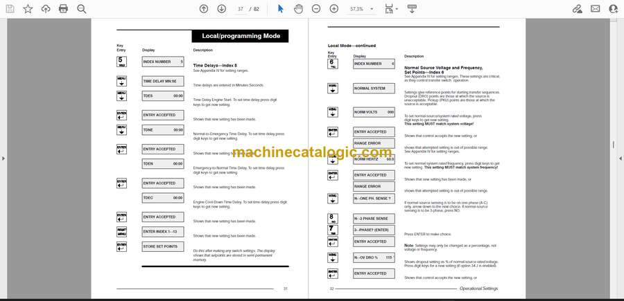 Normal Source Voltage and Frequency, Set Points— Index 6 . . . . . . . . . . . . . . 32