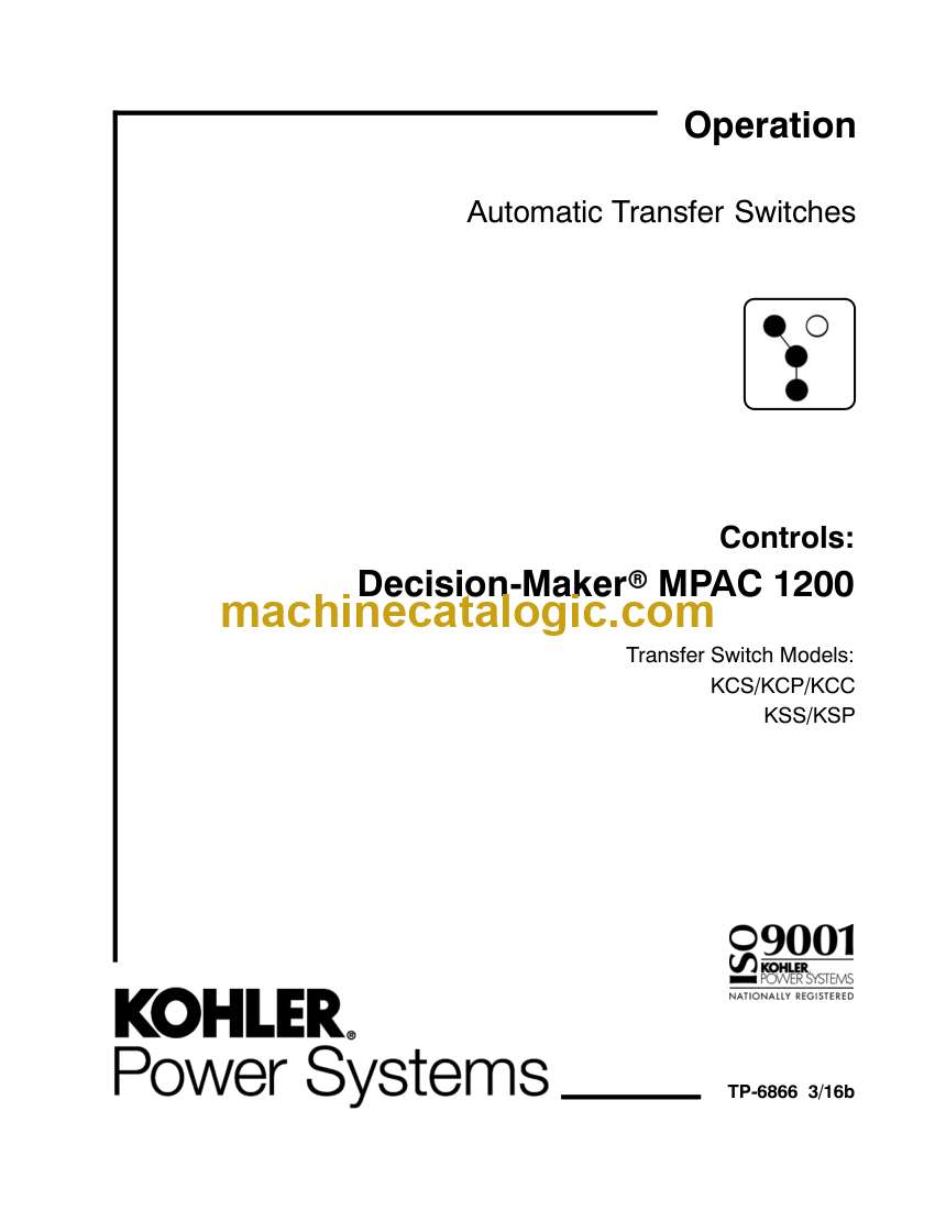 Kohler MPAC 1200 Decision-Maker Automatic Transfer Switches Operation Manual (tp6866)