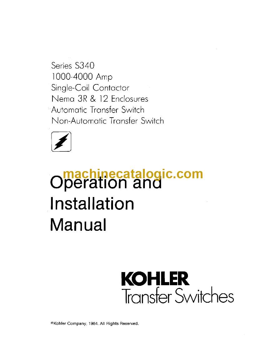 Kohler Series S3450 1000-4000 Amp Single-Coil Contactor Nema 3R, 12 Enclosures Operation and Installation Manual (tp5089)