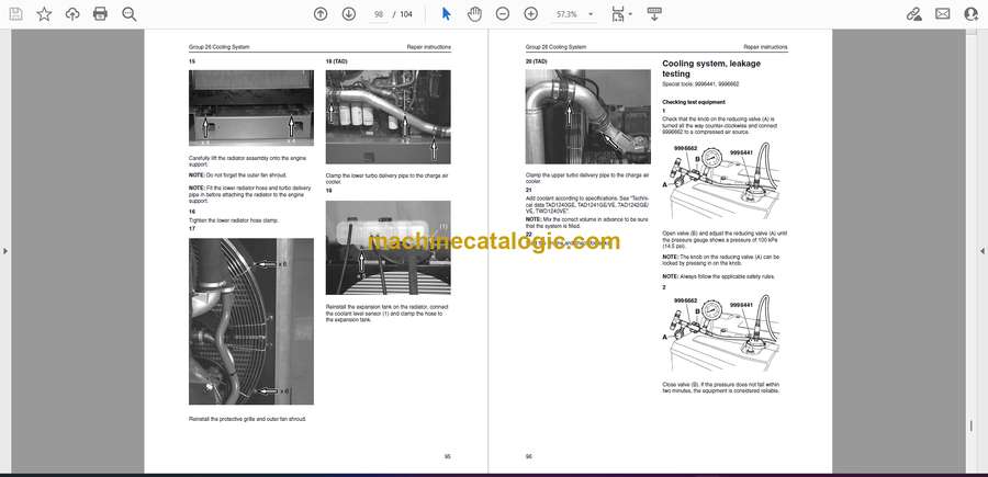 Auxiliary cooling pump, overhaul (TWD) ………… 98