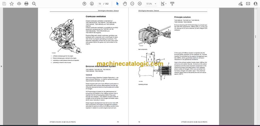 These Kohler TAD/TWD/TWG generator engines usually sit in plant rooms, rental power trailers, or standby sets, running long hours under steady load. This workshop manual is what I’d pull out when we’re past basic checks and actually tearing into the engine or generator end. It walks you through strip-down, inspection, and reassembly in a way that keeps you from missing shims, seals, or timing marks. For example, if a unit comes in with low power and heavy blow‑by, this is the book I’d use to guide a full top‑end overhaul and then verify everything is aligned before we hit the start button.