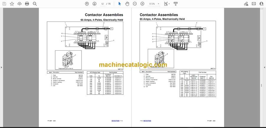 These Kohler TES and TLS automatic transfer switches usually sit in a mechanical room or electrical closet, quietly moving a load between utility and generator when the power goes out. This parts and service manual helps you match what you see in the cabinet—contactors, control boards, relays, wiring harnesses—to the correct Kohler part numbers before you order. When you’re chasing an intermittent transfer problem or replacing a burned contactor, this book lets you trace each component, verify its configuration, and avoid guessing at “close enough” parts.