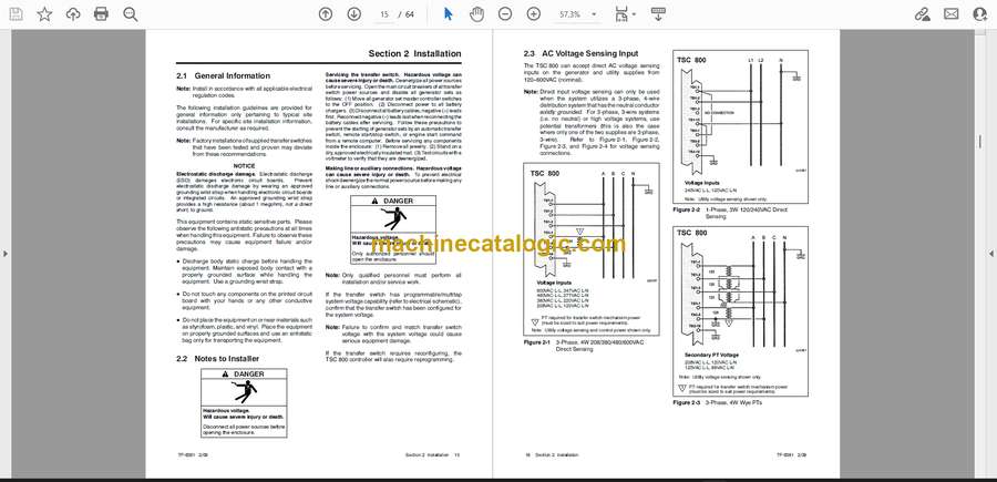 This manual is what I’d keep on the bench when working on a Kohler TSC 800 transfer switch in a building that can’t afford to lose power—hospitals, data rooms, plants, that sort of environment. It helps you trace control logic, verify correct operation between utility and generator, and walk through adjustments instead of just guessing and swapping parts. For example, if the switch hangs between sources or doesn’t transfer back after utility returns, this book guides you through checks to confirm whether it’s a control issue, a sensing problem, or a mechanical bind before you order anything.