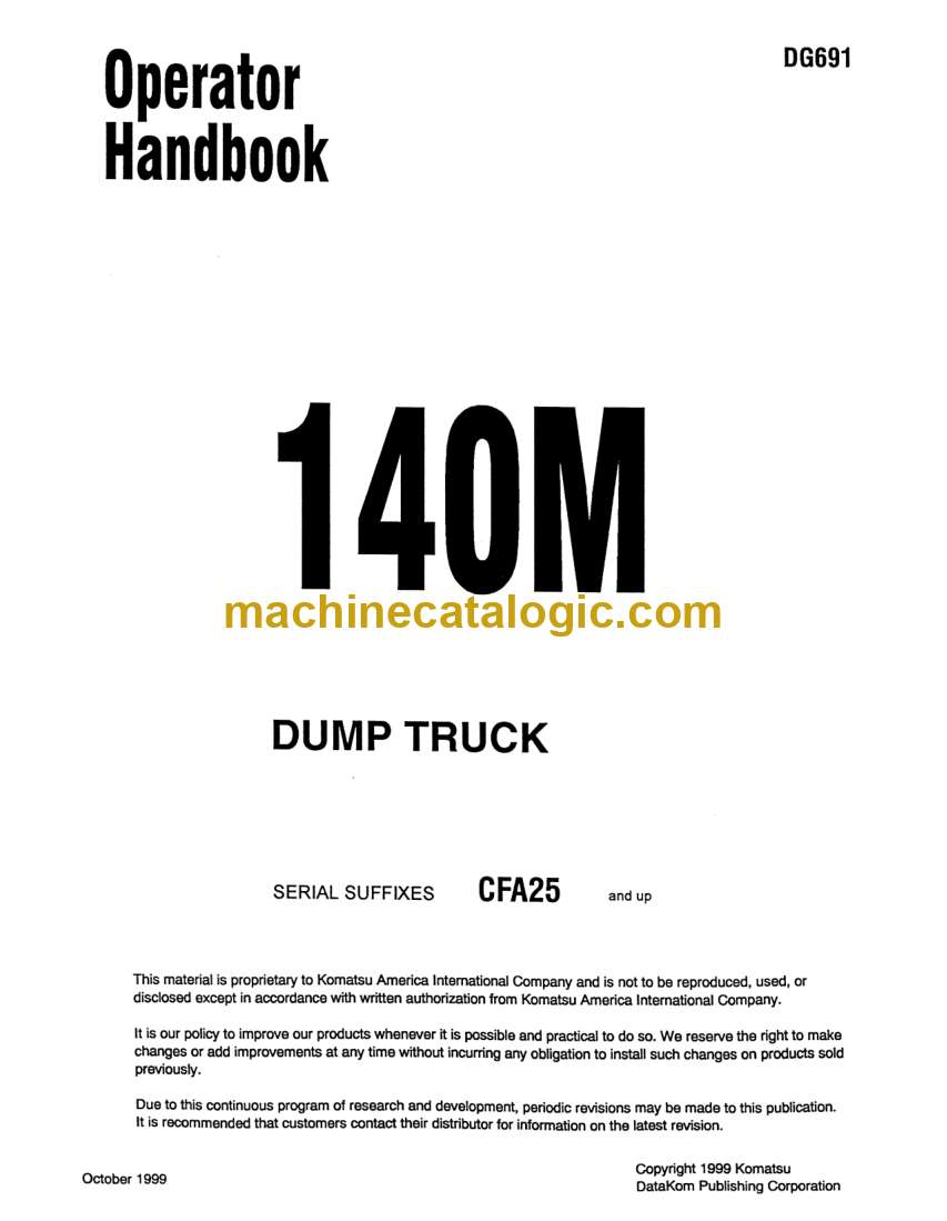 Komatsu 140M Dump Truck Operation and Maintenance Manual (DG691)