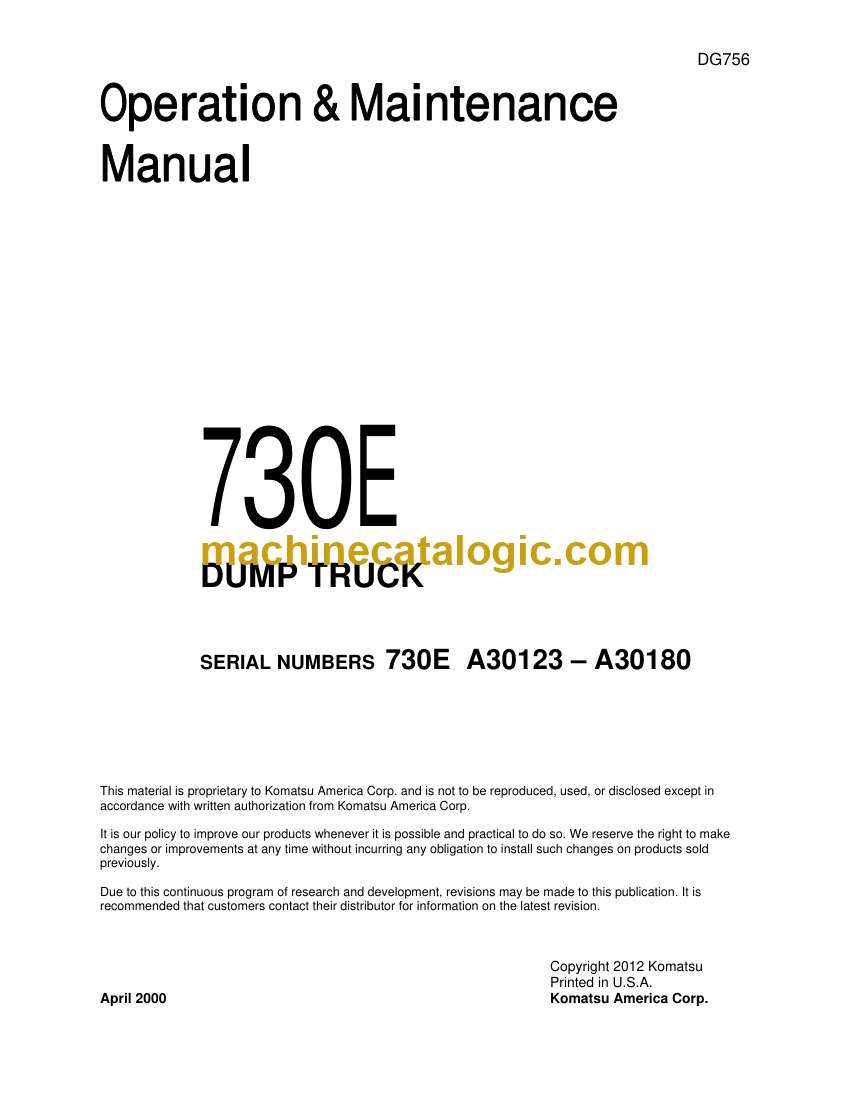 Komatsu 730E Dump Truck Operation and Maintenance Manual (DG756)