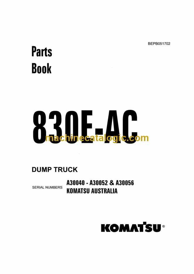 Komatsu 830E-AC Dump Truck Parts Manual (BEPB051702) (A30040-A30052, A30056)