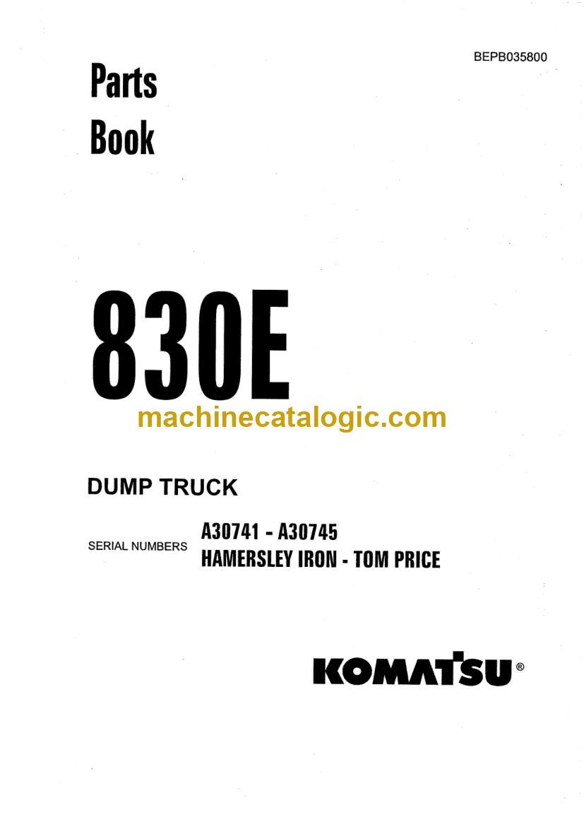 Komatsu 830E Dump Truck Parts Manual (BEPB035800) (A30741-A30745)