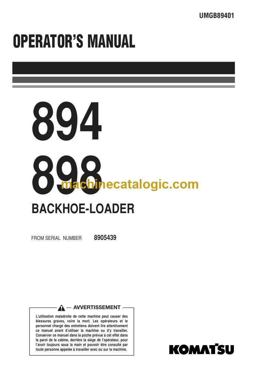 Komatsu 894, 898 Backhoe Loader Operation and Maintenance Manual (UMGB89401)