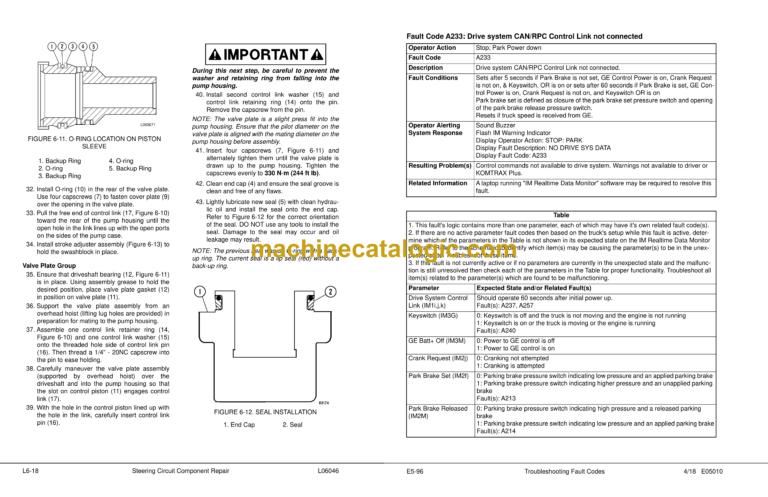 SECTION L6 STEERING CIRCUIT COMPONENT REPAIR INDEX