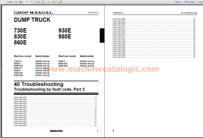 Komatsu 930E-5SE DUMP TRUCK Shop Manual Index