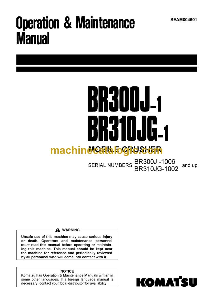 Komatsu BR300J-1, BR310JG-1 Crusher Operation and Maintenance Manual (SEAM004601)