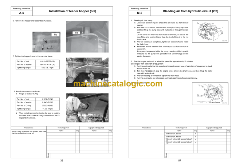 M-2. Flushing of hydraulic circuit, and bleeding air from hydraulic cylinders (Part 1)
