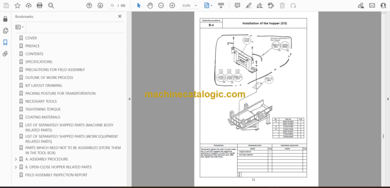 LIST OF SEPARATELY SHIPPED PARTS (MACHINE BODY RELATED PARTS)