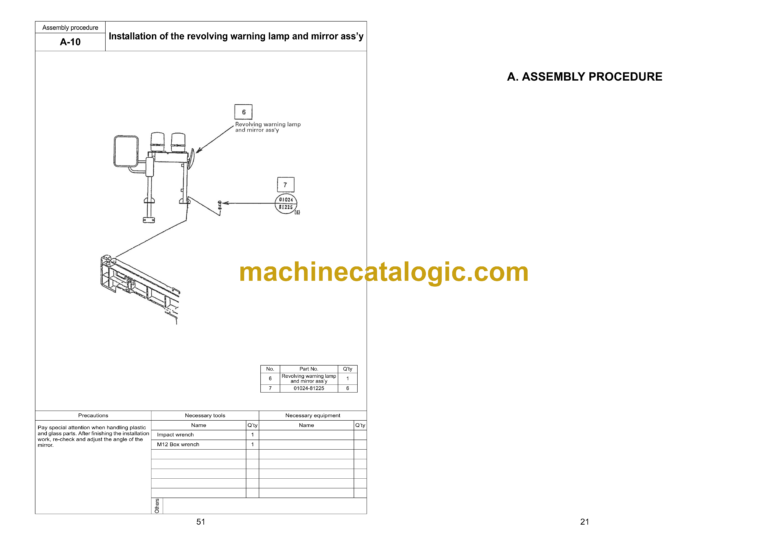 A-10 INSTALLATION OF THE REVOLVING WARNING LAMP AND MIRROR ASS’Y