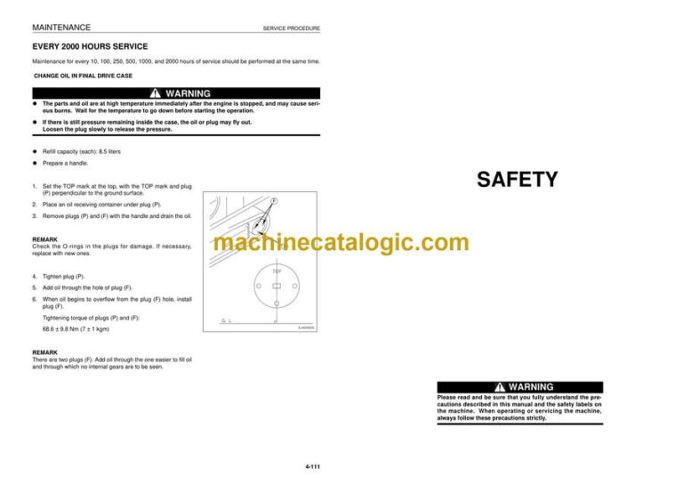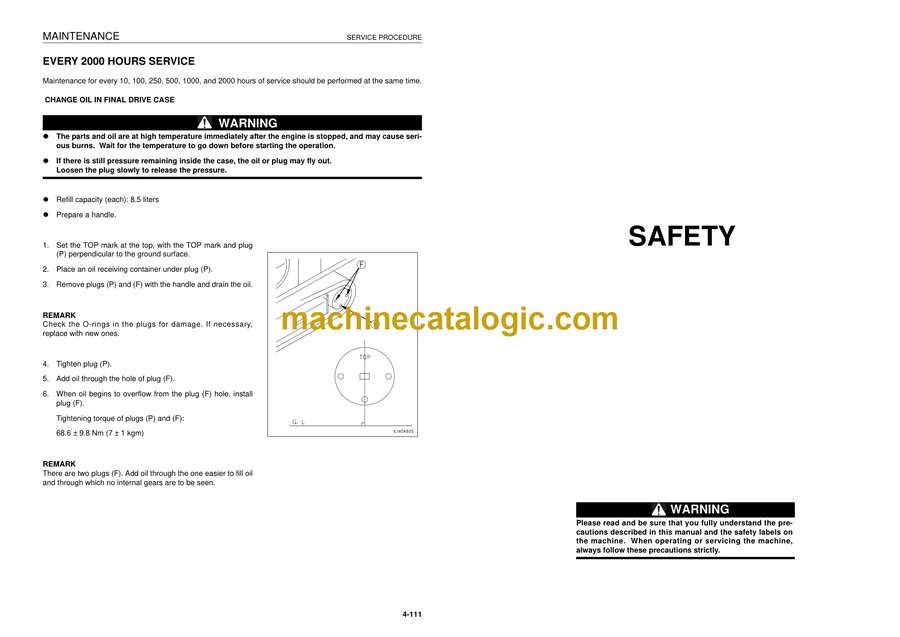 - INITIAL 1000 HOURS SERVICE (FIRST MAINTENANCE FOR NEW MACHINE ONLY)