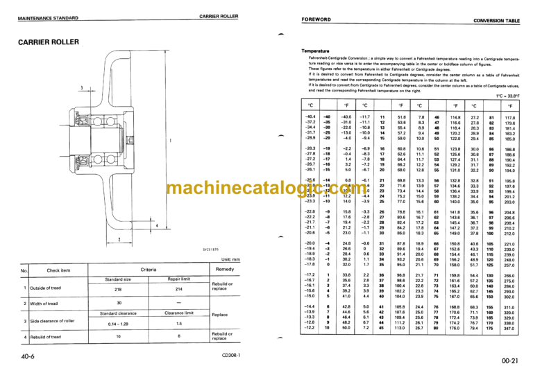 STANDARD VALUE TABLE FOR ENGINE RELATED PARTS