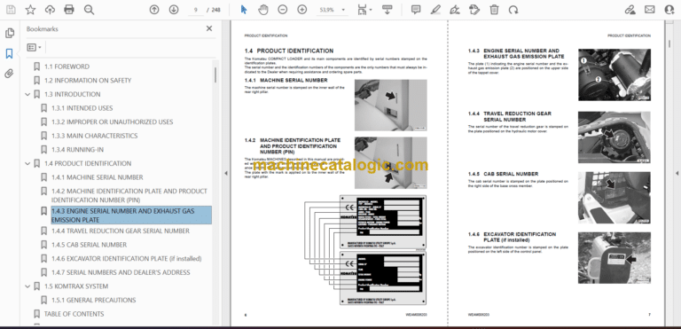 1.4.2 MACHINE IDENTIFICATION PLATE AND PRODUCT IDENTIFICATION NUMBER (PIN)