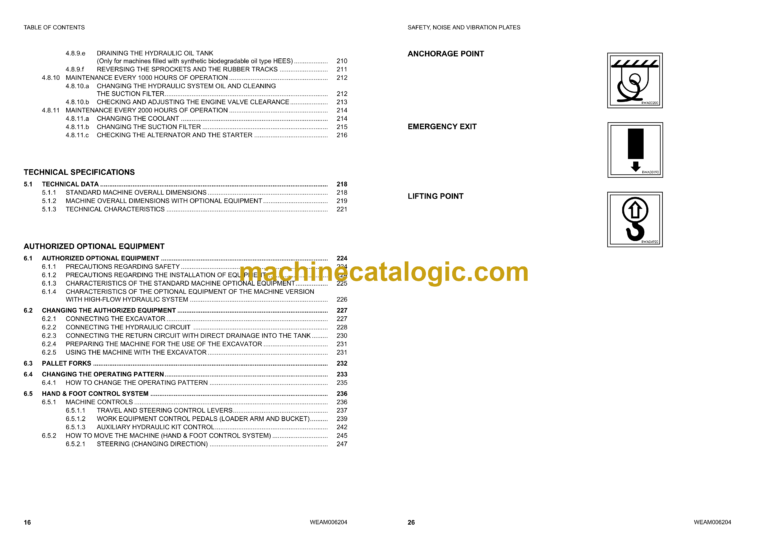 6.1.3 CHARACTERISTICS OF THE STANDARD MACHINE OPTIONAL EQUIPMENT